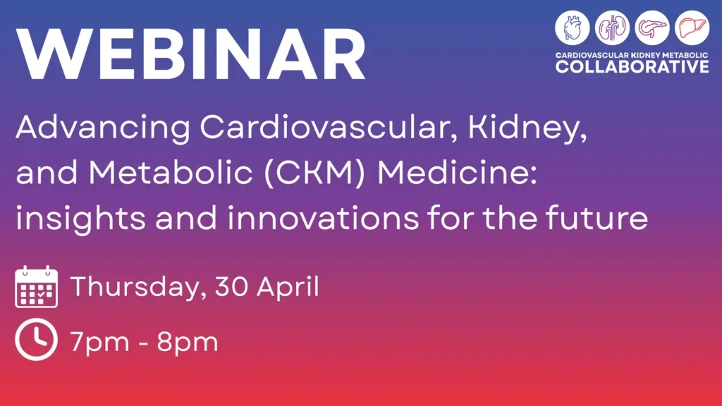 Taking place at 7pm on Thursday April 30, 2026, the webinar – Advancing Cardiovascular, Kidney and Metabolic (CKM) Medicine: Insights and Innovations for the Future – marks the beginning of an exciting new initiative aimed at transforming care for people living with CKM conditions.